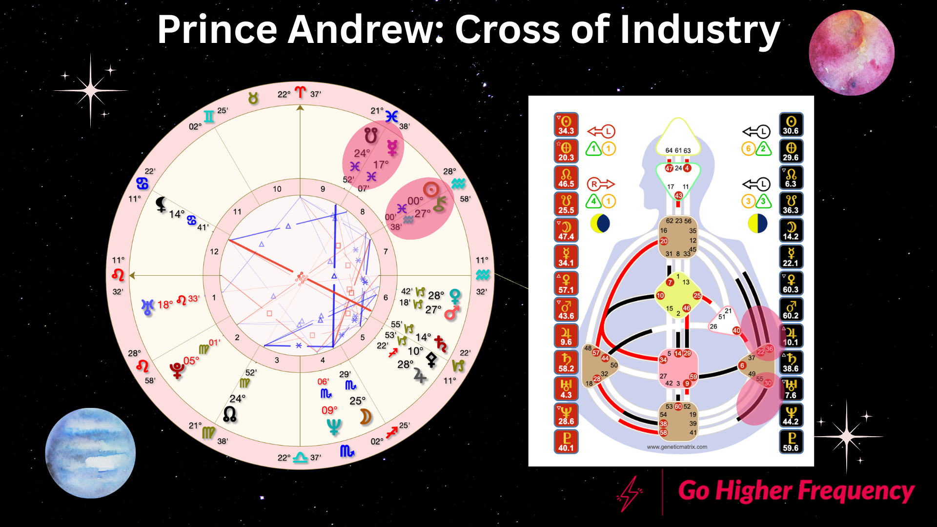The former Prince Andrew’s birthday fell on the Cross of Industry. He has his Sun conjunct Chiron almost to the exact degree of the Eclipse. He was arrested on his birthday, not for sex crimes per se, but for his abuse of office – related to industry.