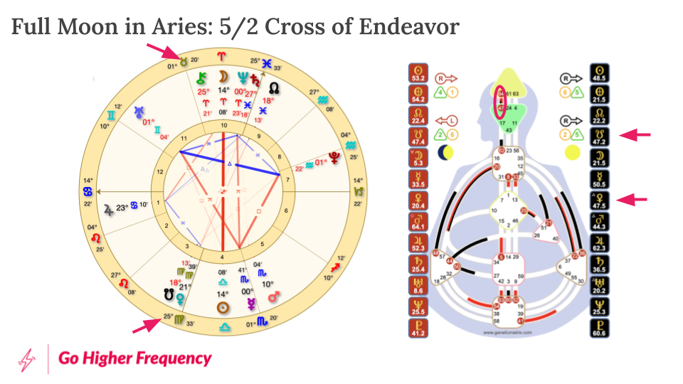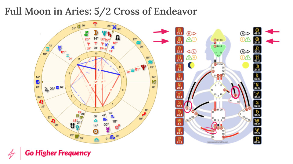 This full moon, placed in Washington DC, falls on the 5/2 Left Angle Cross of Endeavor. This cross is about pushing through any limits or boundaries to get to the other side. It’s about taking action to achieve one’s goals. The Cross is in the Quarter of Duality, so it involves karma with the other or the themes of polarity. Both Putin and Ursula Von der Leyen were born on different lines of this cross.