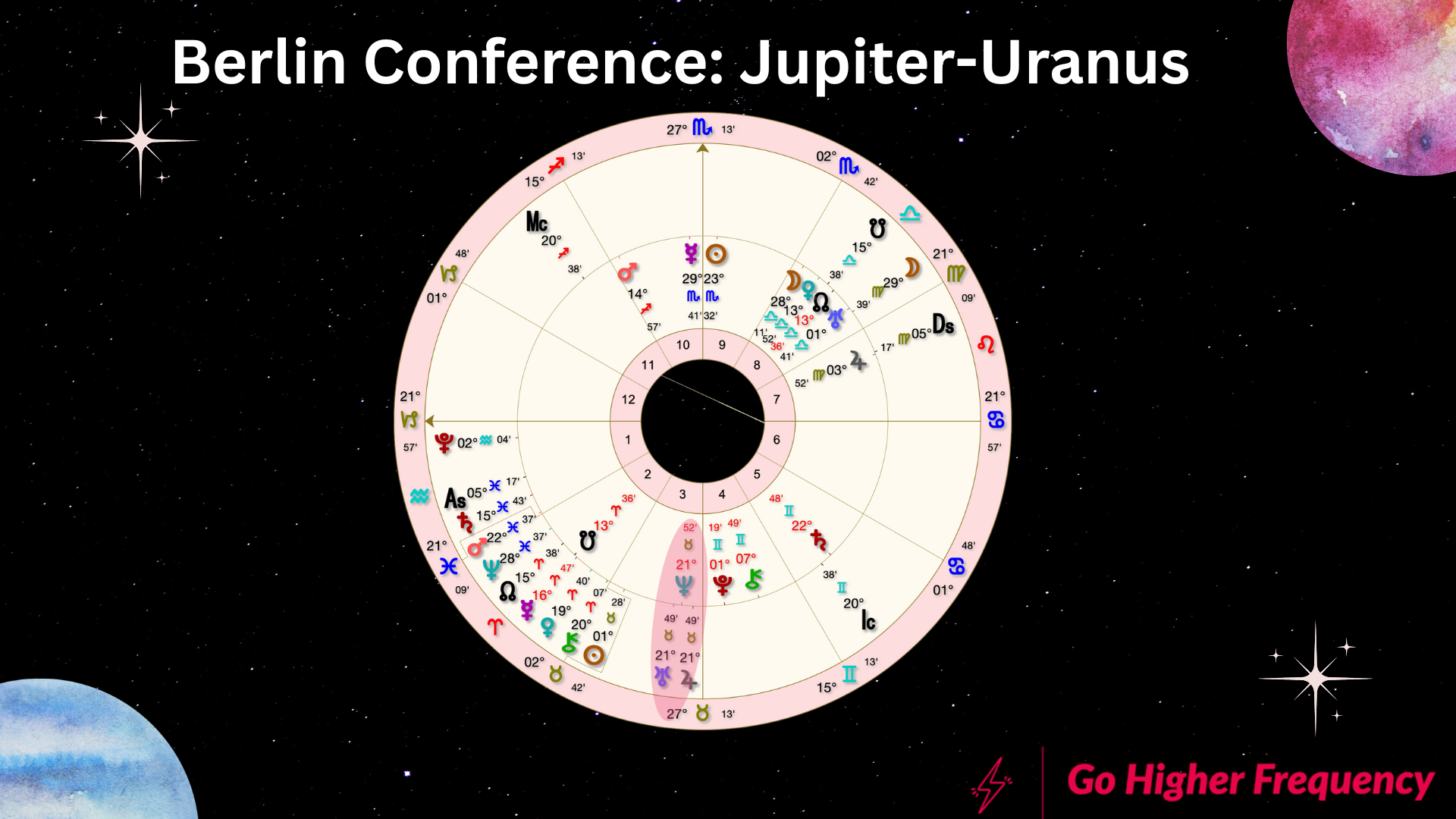I noticed that this chart's Neptune, at 21° Taurus, was at the very degree of the recent Jupiter-Uranus conjunction in 2024. This degree trines the United States' natal Neptune at 22° Virgo. It also happens to be Hitler’s birthday. This degree falls in the Human Design gate 23, called “Splitting Apart” in the line labeled “Fragmentation”.