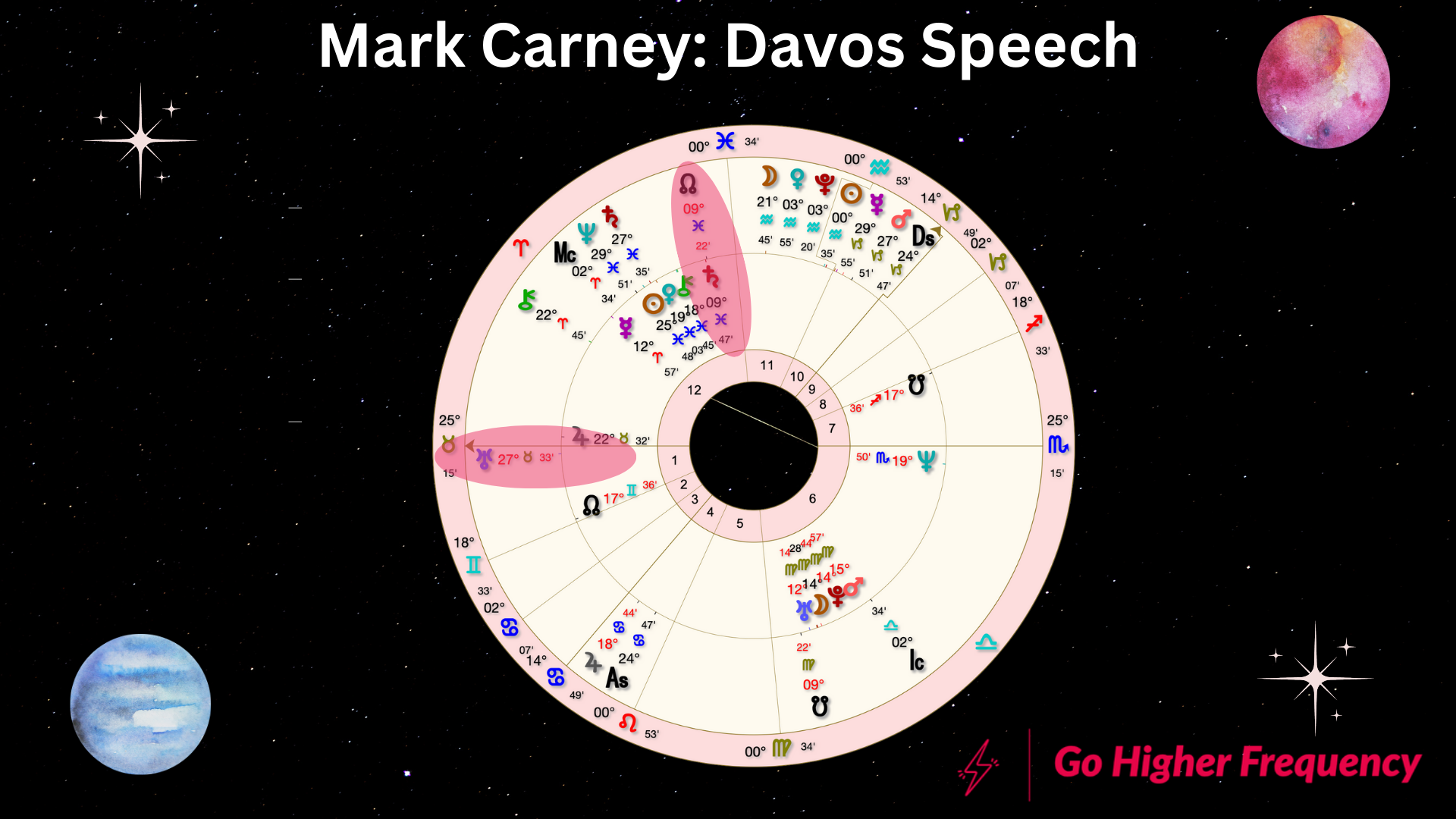 With the Nodes in the Channel of Community, the North Node in the Gate of Friendship and line labeled Leadership by Example, some leaders are rising to the top. World leaders like Mark Carney who delivered a speech in Davos that resonated so much with this Saturn-Neptune cycle.