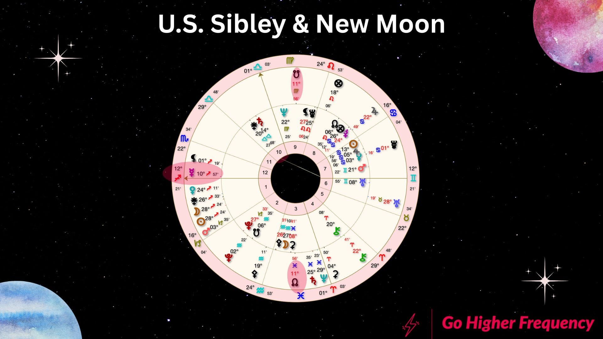 So let’s look closely at this New Moon chart both as a standalone chart located in Washington D.C. and around the U.S. Sibley chart. The New Moon in Sagittarius is out-of-bounds along with Mars. Mars has been out-of-bounds since Thanksgiving and will remain out-of-bounds until the next Full Moon in Capricorn. The New Moon is inconjunct a retrograde Uranus in Taurus in the 10th house of the standalone chart. We are adjusting to the recent shifts that have been revealed to us about our leadership and our standing in the world.
